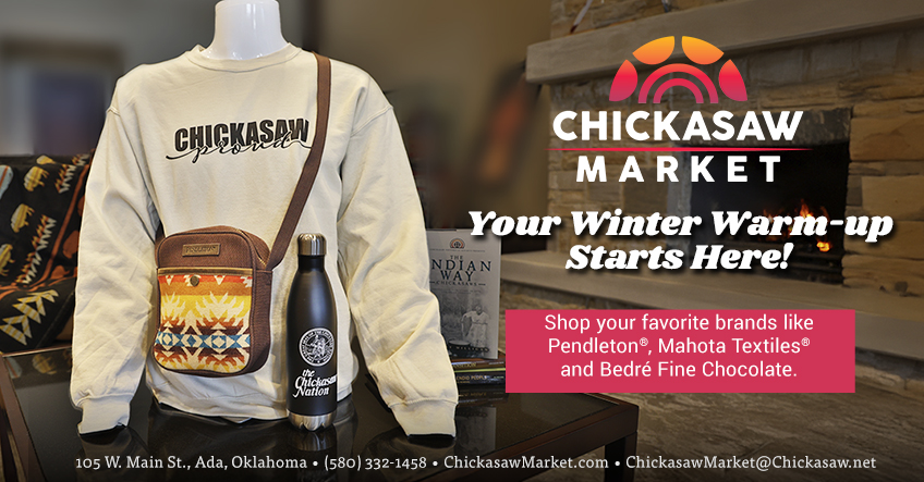 Chickasaw Market is an authorized distributor of Bedre’, Mahota, Chickasaw Press and Pendleton products. Call (580) 332-1458 to purchase over the phone, or email ChickasawMarket@Chickasaw.net to order.